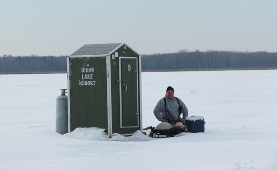 We place all our dark and angling house's out on Lake Winnibigoshish 3rd River Flowage. About 7 miles from the resort.